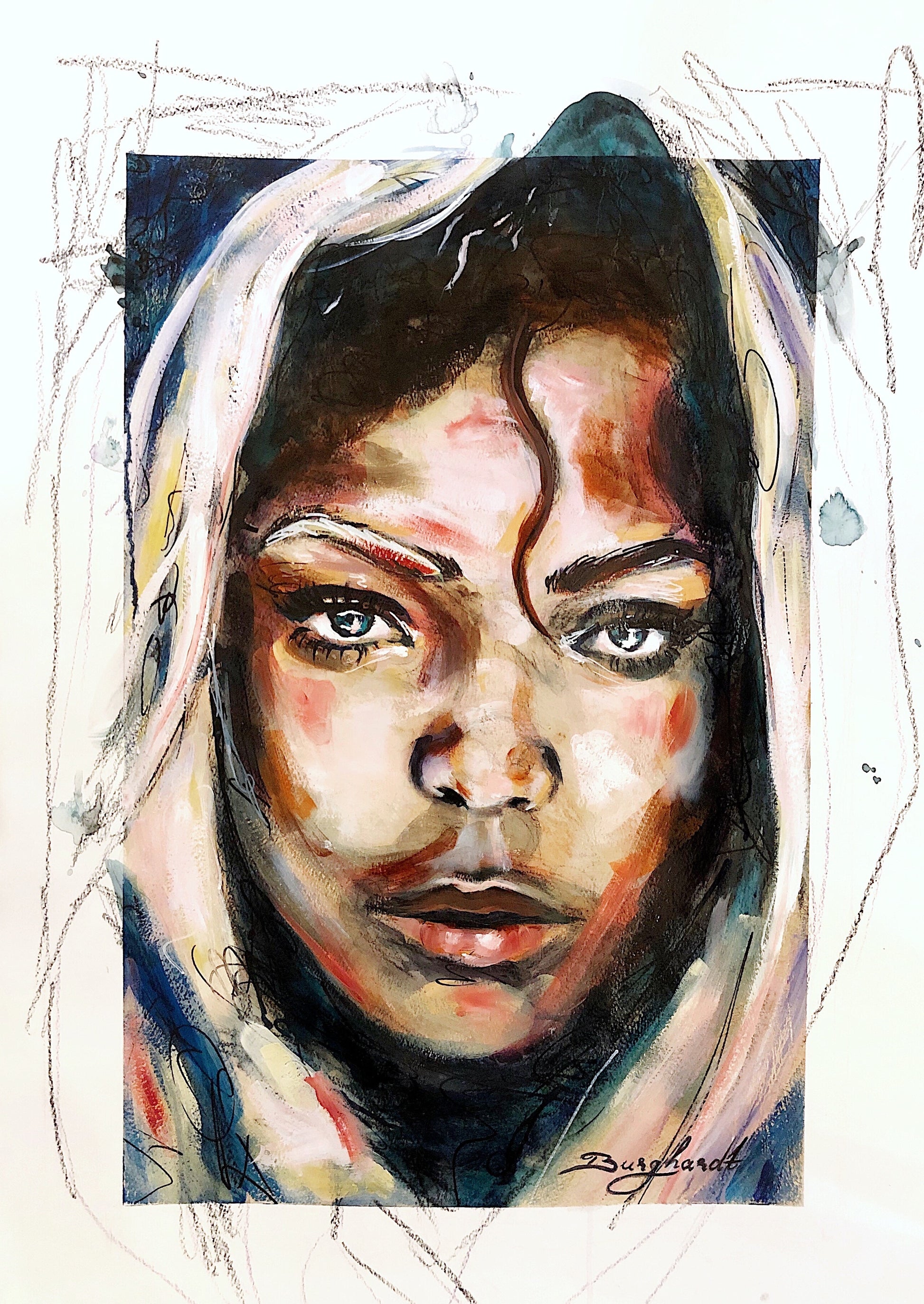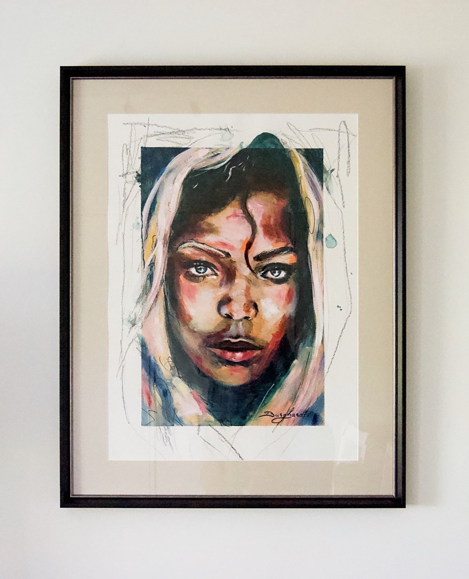 Mixed media with oil on paper - Framed
